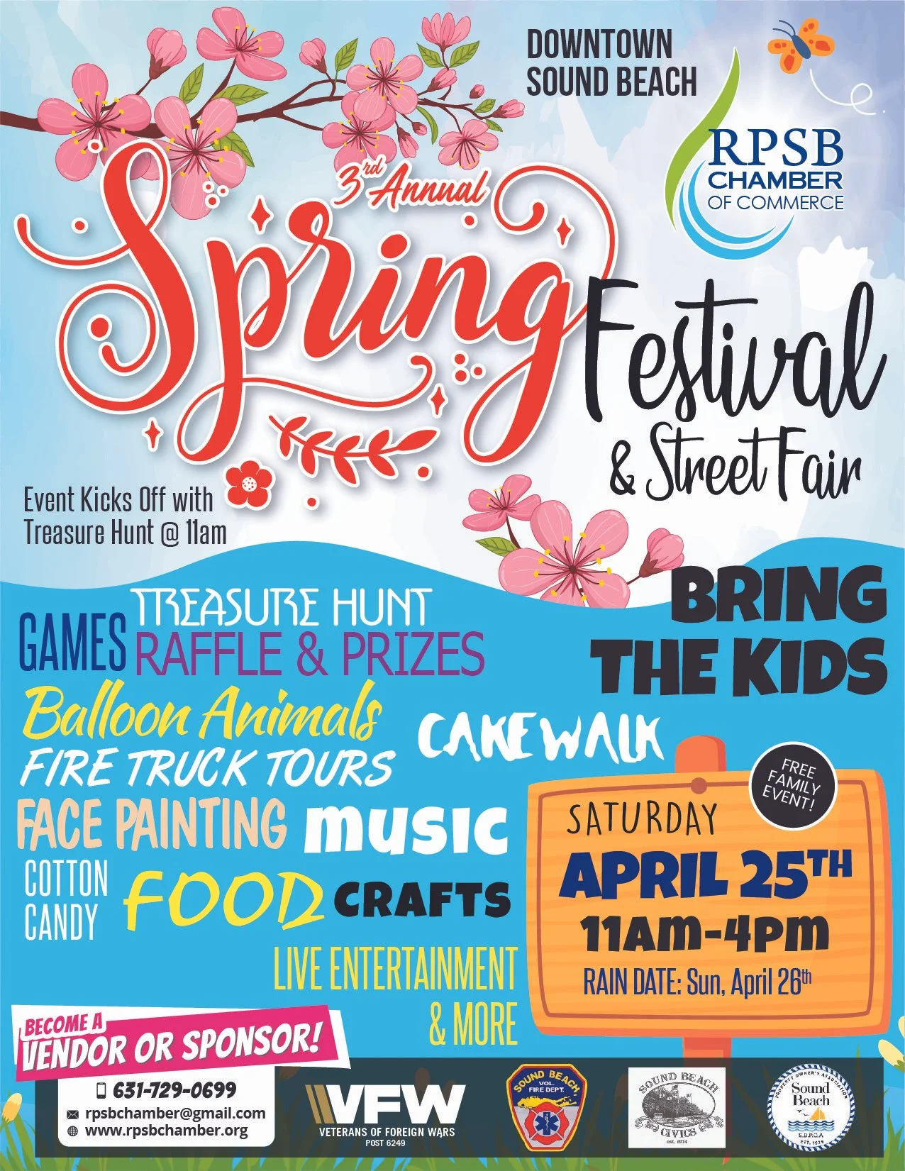 Join us for the Downtown Sound Beach Spring Festival & Street Fair on Saturday, April 25 from 11 AM–4 PM, as the heart of Sound Beach comes alive with community, creativity, and local flavor.